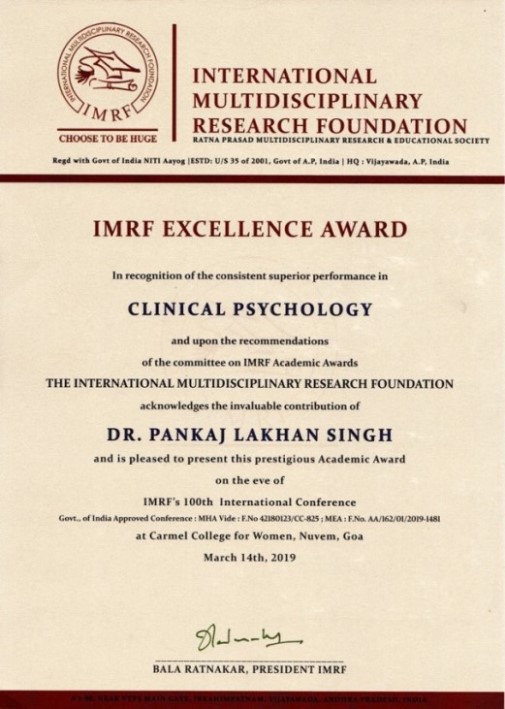 Dr.Pankaj Lakhan Singh trained as a psychotherapist and specialized in neuropsycholgy,therapeutic rehabilitation psychology and Cognitive Therapy.He has gained ten years clinical expertise treating individuals, couples, families and groups experiencing a wide range of emotional difficulties and more severe mental health presentations both within the hospital and the private clinic. He acts as consultant to assisting with employee’s stress management and productivity. He provides cutting edge stress management training and seminars to corporate employees and mangers .
